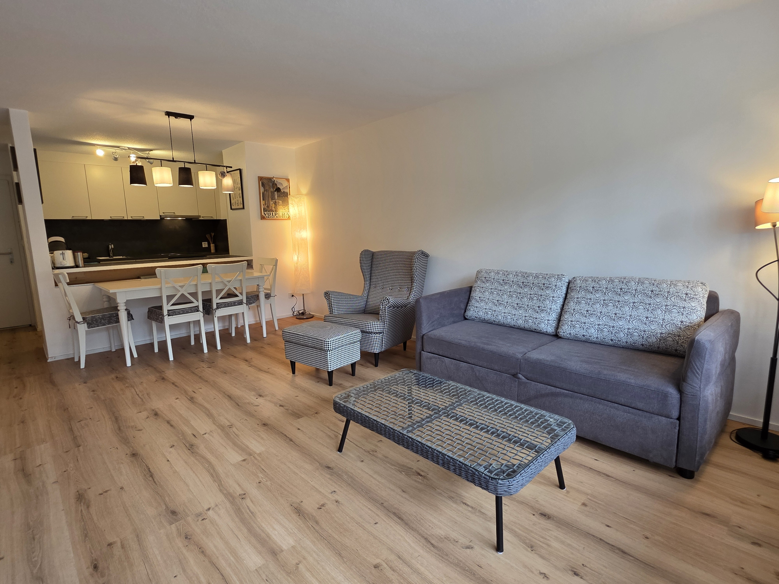 Erleben Sie einen unvergesslichen Aktivurlaub in dieser zweckmäßig eingerichteten 2.5-Zimmer-Wohnung mit einer Fläche von 65m². Die Wohnung verfügt über eine wunderschöne bewachsene Terrasse, die nach Süden ausgerichtet ist und einen malerischen Blick auf den Golfplatz bietet. Haustiere sind in dieser Wohnung nicht gestattet.
